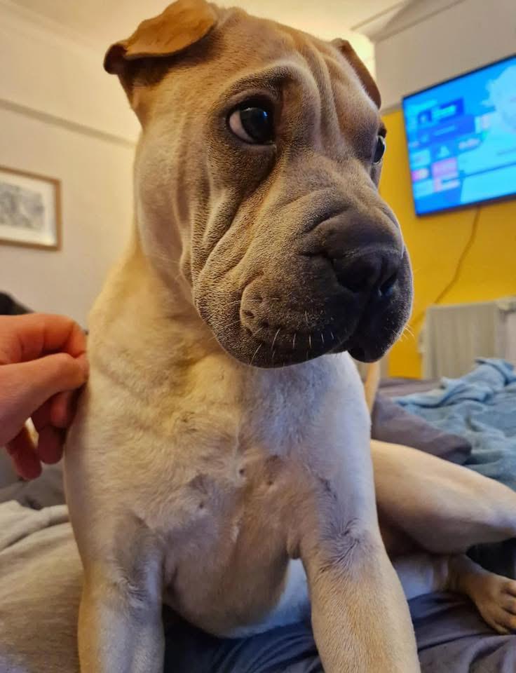 Her Shar-Pei features are unmistakable, but her unique look hints at something extra her previous family believed she might have a touch of Cane Corso, though that’s still up for debate. We’d love to hear your guesses too! 🐶💬