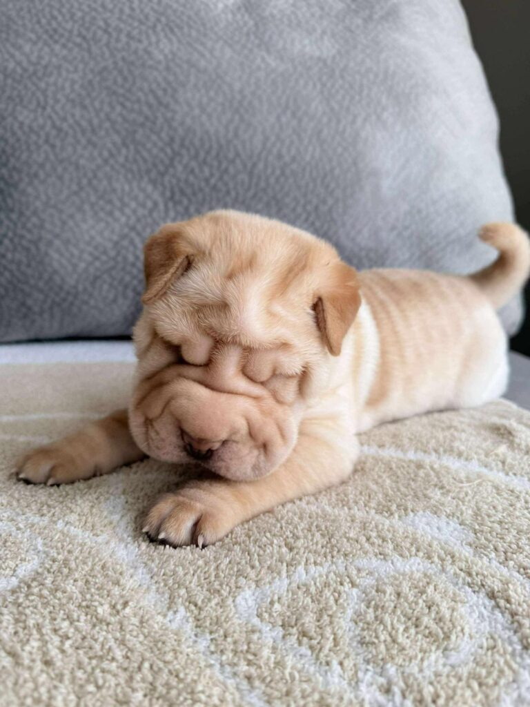 Meet Agatha, our bright and beautiful first-born Shar-Pei pup! From the moment she arrived, Agatha proved to be one of the smartest and most determined little girls we’ve ever had. She’s full of life, playful, and loves curling up for naps after a long day of fun. 🐾💛